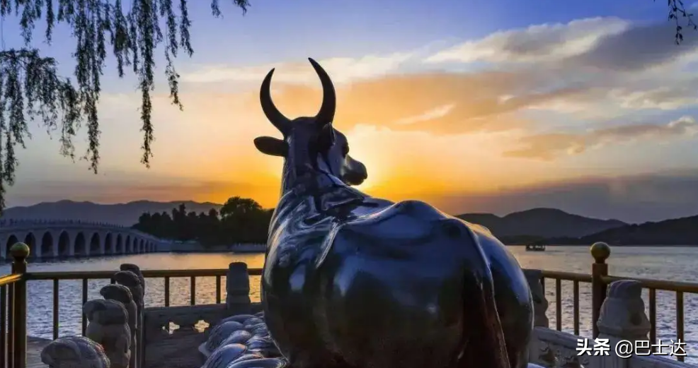 铜牛:当年乾隆皇帝将其点缀于此是希望它能永镇悠水,长久地降服洪水,给园林及附近百姓带来无尽的祥福