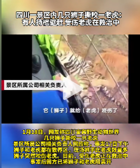 网友在四川宜宾的景区里看到了老虎和狮子打架,1头斑斓猛虎被3头狮子给按趴下了,还撕咬出了不少伤口。后来园区负责人回复说,这是正常现象,已经安排救治。可是老虎真的就打不过狮子吗?