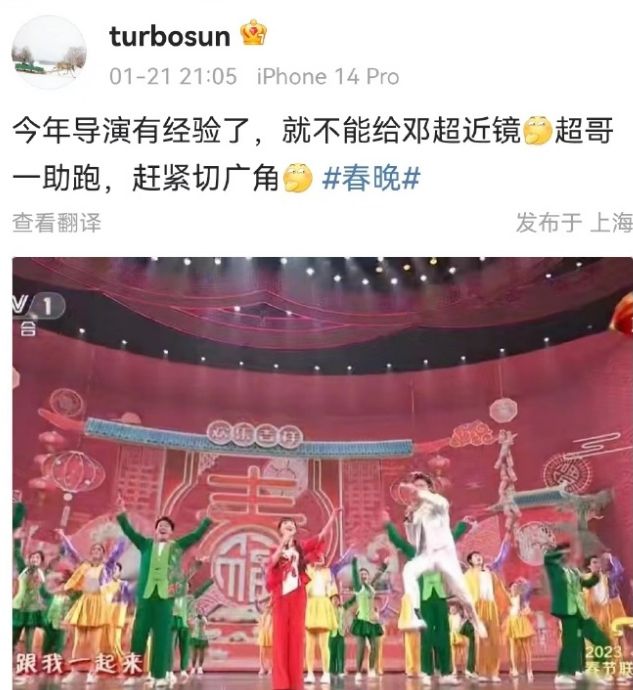 邓超今年和王二妮合唱,观众都以为去年出圈之后邓超今年会收敛,但好像是不可能的。今年跳的感觉比去年还高,走位都是用跳的,真的是动如脱兔,网友调侃感觉他每个毛孔都在用力。