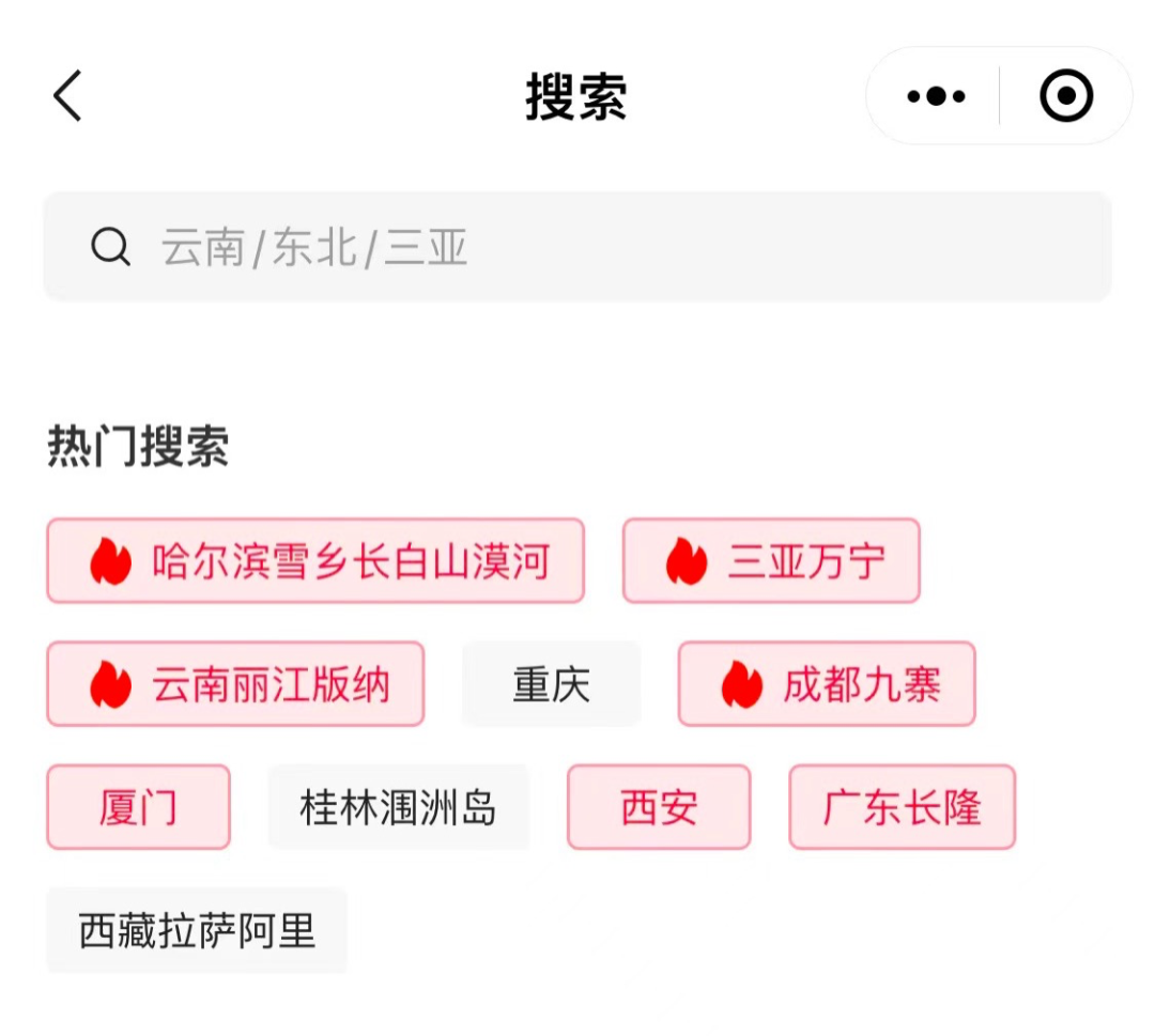 在这场“报复性”春节游的带动下,灰鸭旅行团的小亮已经连续一周加班到凌晨了。他所在的公司是一家半自助旅行团,可帮助游客规划行程路线、酒店住宿、行程门票等,并根据游客意愿提供导游、游玩和餐饮服务。小亮提供的小程序显示,哈尔滨雪乡长白山漠河、三亚万宁、云南丽江版纳、成都九寨都处于火爆搜索状态。